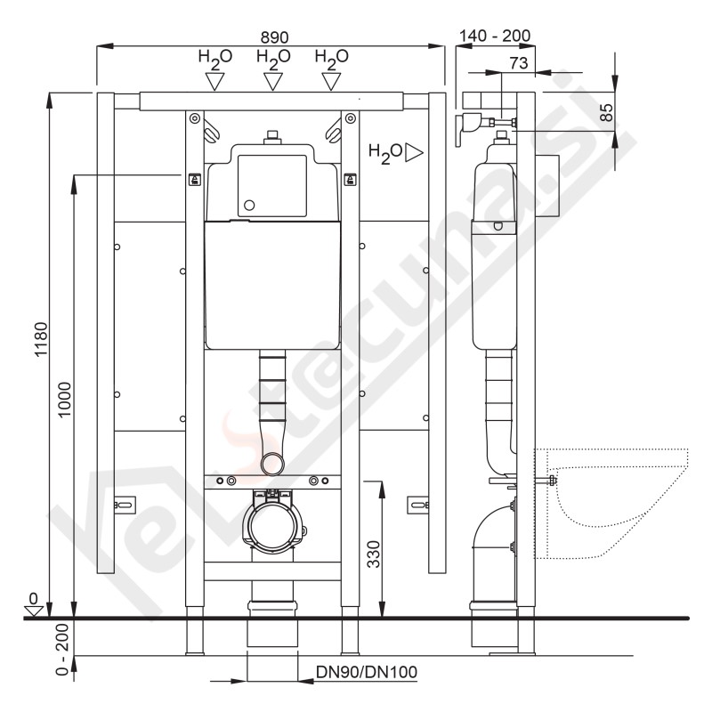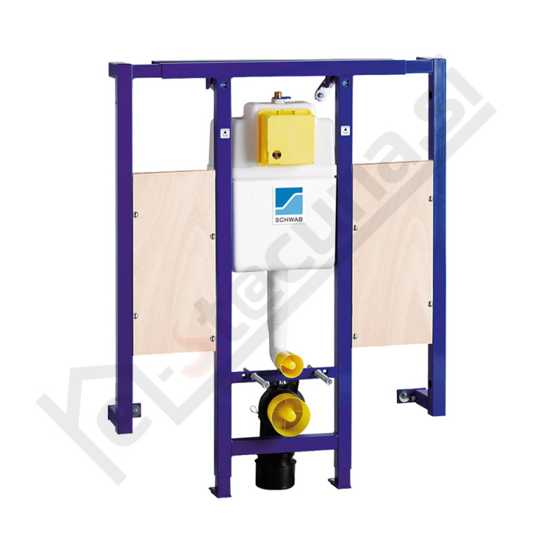 Nosilni WC element, površinsko zaščiten s prašnim lakiranjem, izdelan iz profilov 40×40 mm, s predmontiranim vgradnim splakovalnikom tip 380