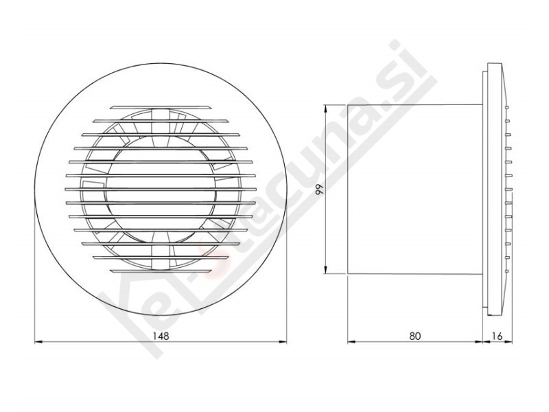 Ventilator je opremljen z zaznavalom vlage v prostoru in časovnikom. Z zaznavalom lahko uravnavamo nivo vlage v prostoru med ~ 60%RH – ~90%RH, časovnik pa uravnava zamik v intervalu med 1 in 30 minut.