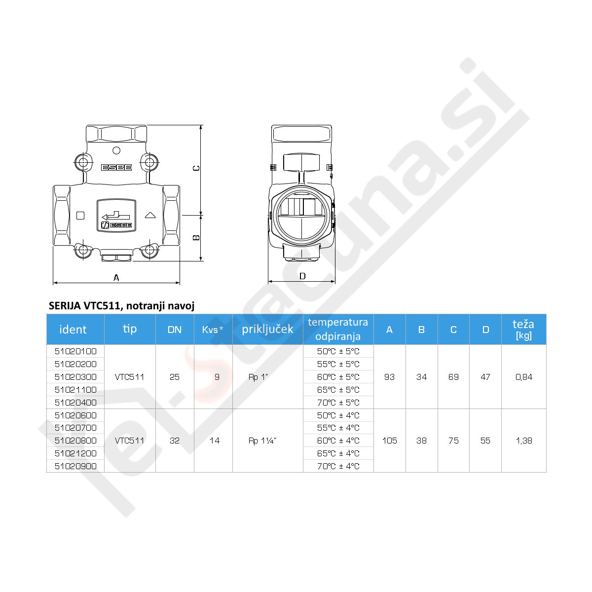 ESBE VTC511 je visokokakovosten termostatski mešalni ventil, posebej zasnovan za kotle na trda goriva do 150 kW. Njegova glavna naloga je zagotavljanje visoke povratne temperature v kotel, kar pripomore k učinkovitejšemu zgorevanju, zmanjšanju emisij in daljši življenjski dobi kotla.