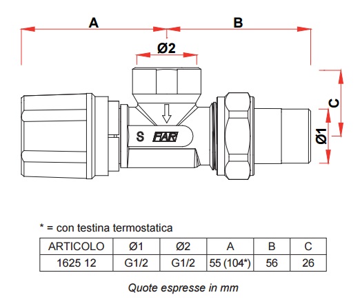 FAR radiatorski ventil 1/2″ ravni term. 1625