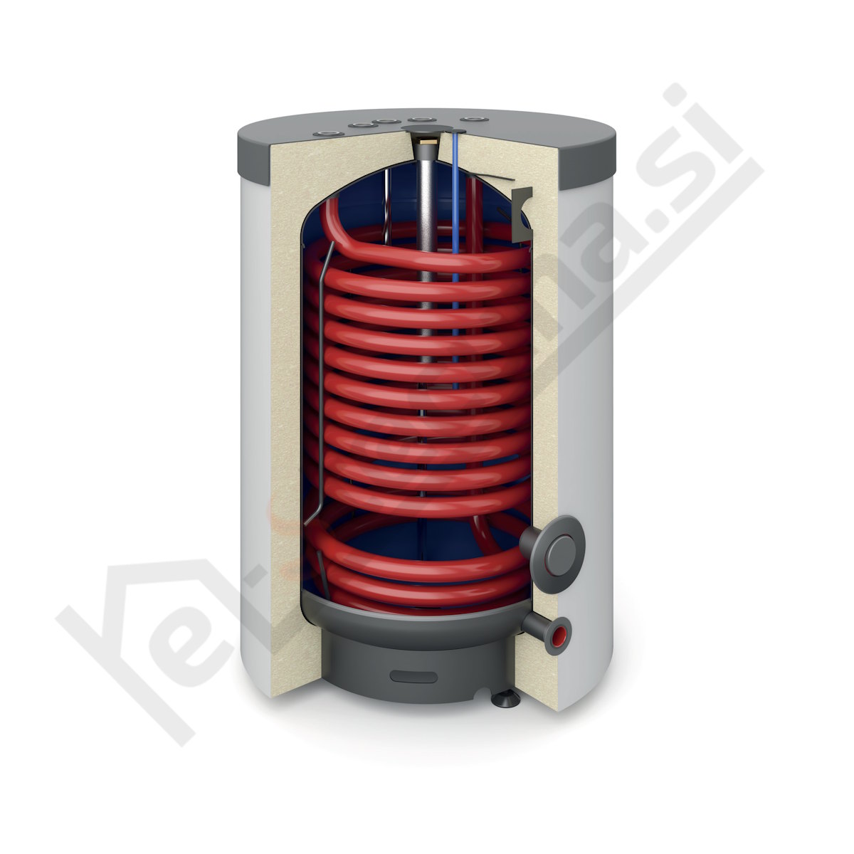izmenjevalec po celotni višini bojlerja
