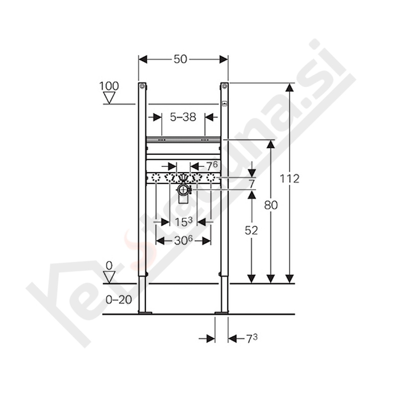 GEBERIT Duofix Basic za umivalnik, 112cm, stoječa armatura je univerzalni montažni element za vse izvedbe v suhomontažni vgradnji. Optimalno je ustrezen za vgradnjo pred zidano steno kot predstenska inštalacija, ali v lahko nenosilno – suhomontažno steno. Višina elementa je 112 cm, primeren pa je za umivalnik s stoječo armaturo.