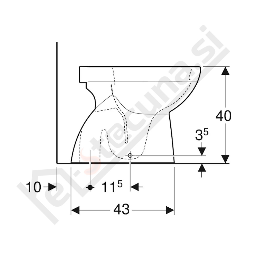 Geberit Selnova talna wc školjka, vertikalni odtok, delno zaprta oblika, Rimfree