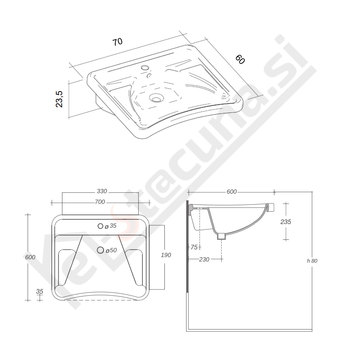 Ergonomski umivalnik z oporo za komolce (invalidski umivalnik)