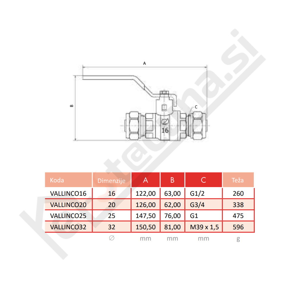 Krogelni ventil z vijačnimi priključki za Isoltubex alumplast cev.