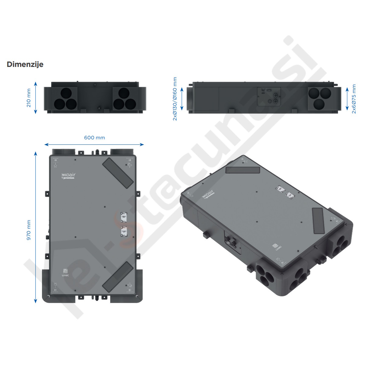 Jeremias Ekkoair LOGIC je visoko učinkovita centralna prezračevalna rekuperacijska naprava, zasnovana za zagotavljanje svežega zraka, pri tem pa učinkovito izkorišča toploto iz odpadnega zraka. Z integriranim elektronskim avtomatskim by-passom omogoča optimalno prezračevanje glede na zunanje in notranje pogoje.