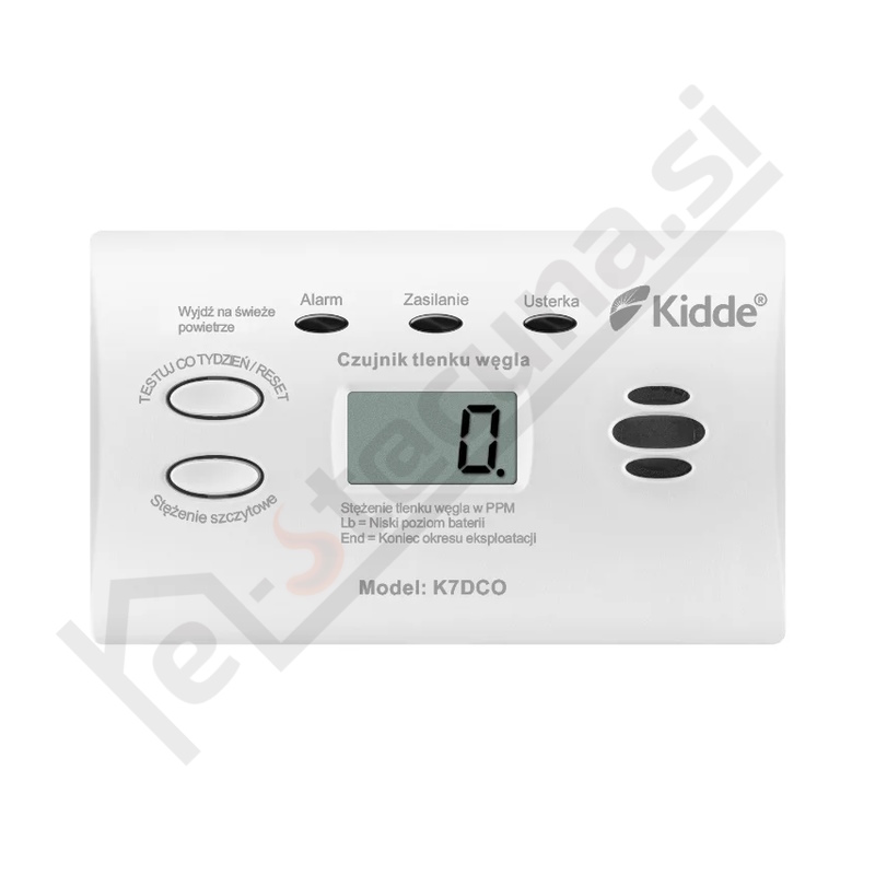 Novost – detektor Kidde K7DCO je baterijsko napajani detektor CO z 10-letno življenjsko dobo in ima 10 letno garancijo. Alarm združuje digitalni zaslon za trenutne in najvišje nivoje CO s 3 različnimi statusnimi LED diodami, ki označujejo alarm, normalno delovanje in napako. Posodobljen je bil iz prejšnjega modela 7DCO, da je v skladu z najnovejšimi standardi, ki jih predpisuje EN 50291-1:2018 in EN 50291-2:2019, da zagotovite ustrezno zaščito vašega doma. Ob koncu življenjske dobe ali ob iztrošenih baterijah vas alarm na to opozori z zvočnim in LED opozorilom ter izpisom na prikazovalniku. Naprava je primerna za vgradnjo v počitniška vozila, plovila in avtodome saj je standardizirana tudi po EN 50291-2:2019.