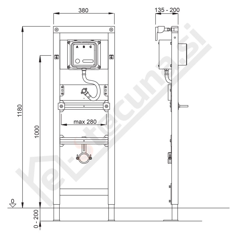 Predmontirani pritrdilni elementi in prilagodljive oporne noge (0-200mm).