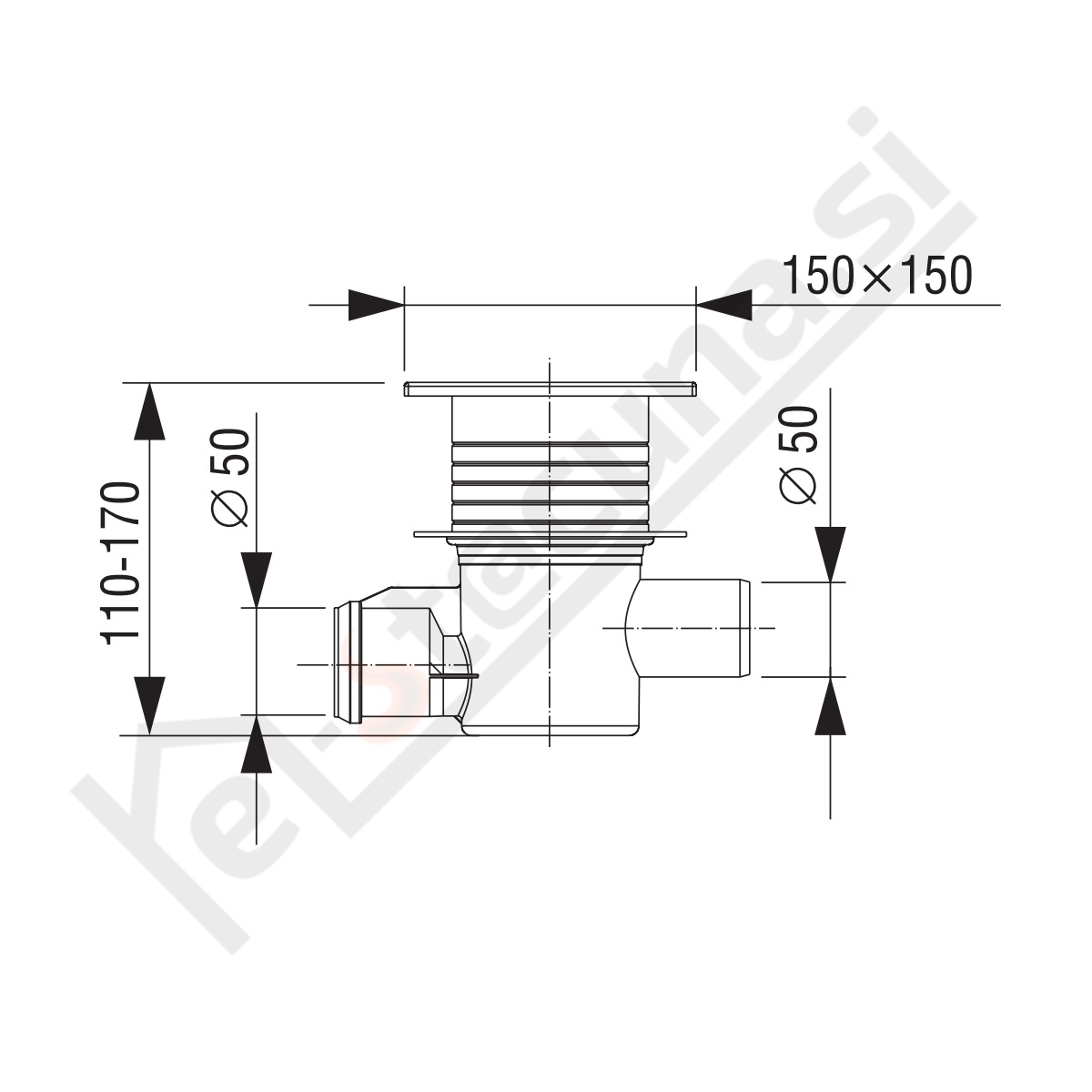 LIV talni sifon, horizontalni, pretočni, rešetka 150 x 150 mm
