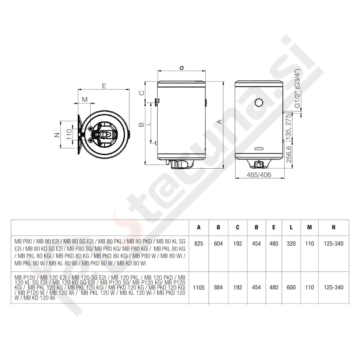 Metalac Aurora MB P SG, električni bojler z suhim električnim grelcem