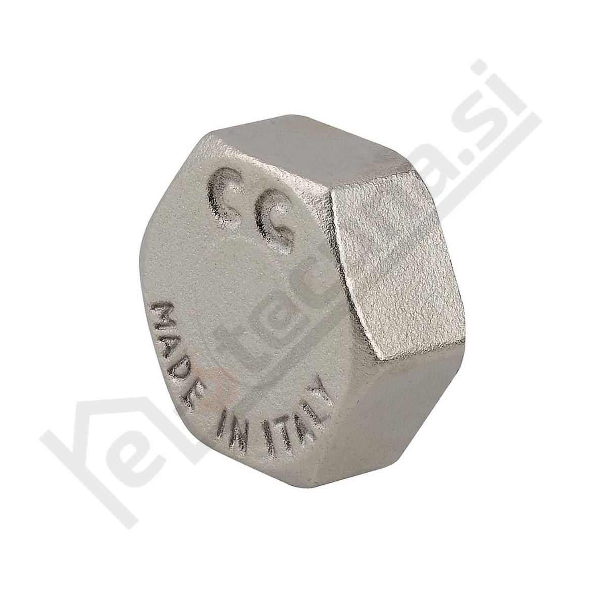 CG čep, notranji navoj, prevlečen z nikljem za večjo odpornost proti koroziji, daljšo življenjsko dobo in estetski videz. Za uporabo v vodovodnih in ogrevalnih sistemih.