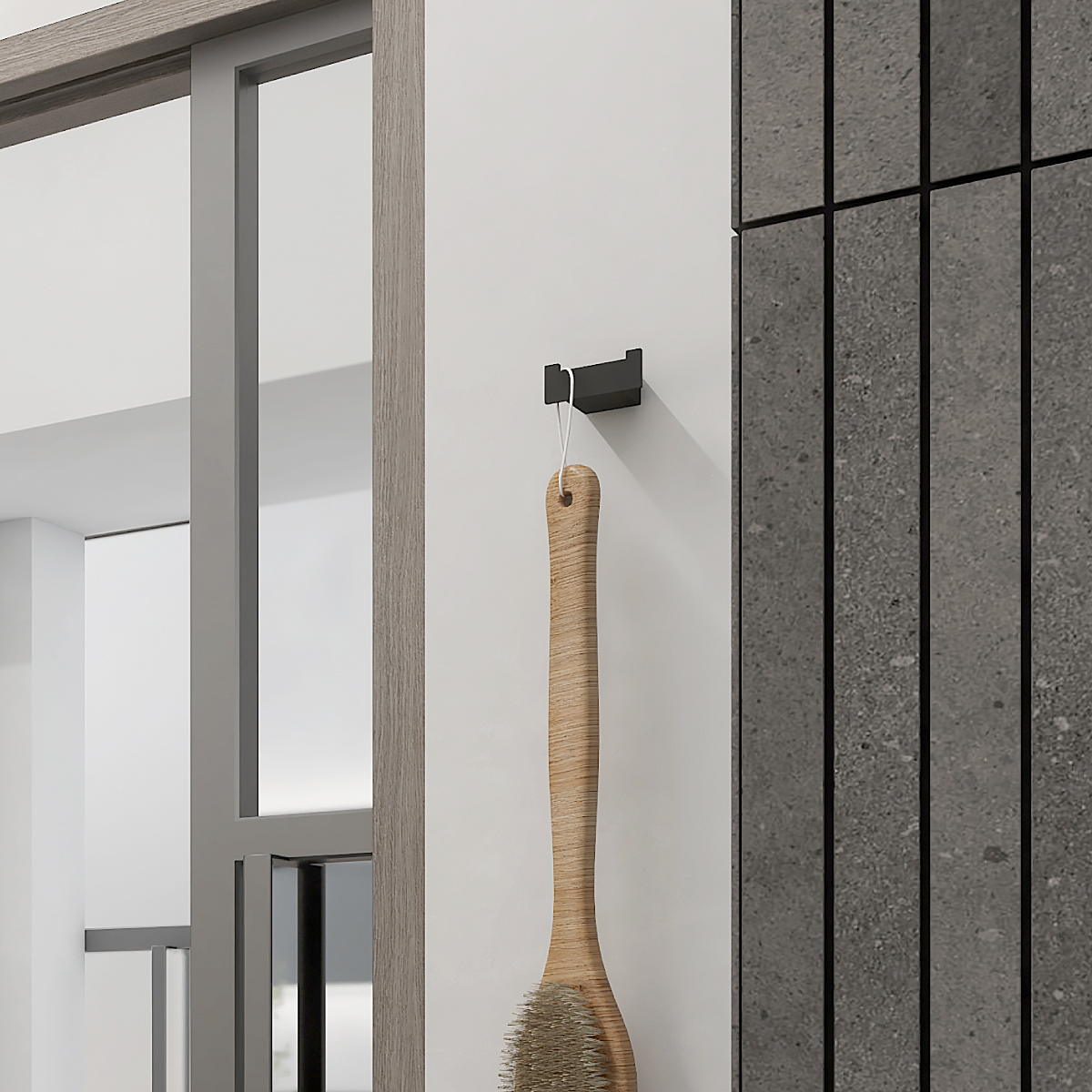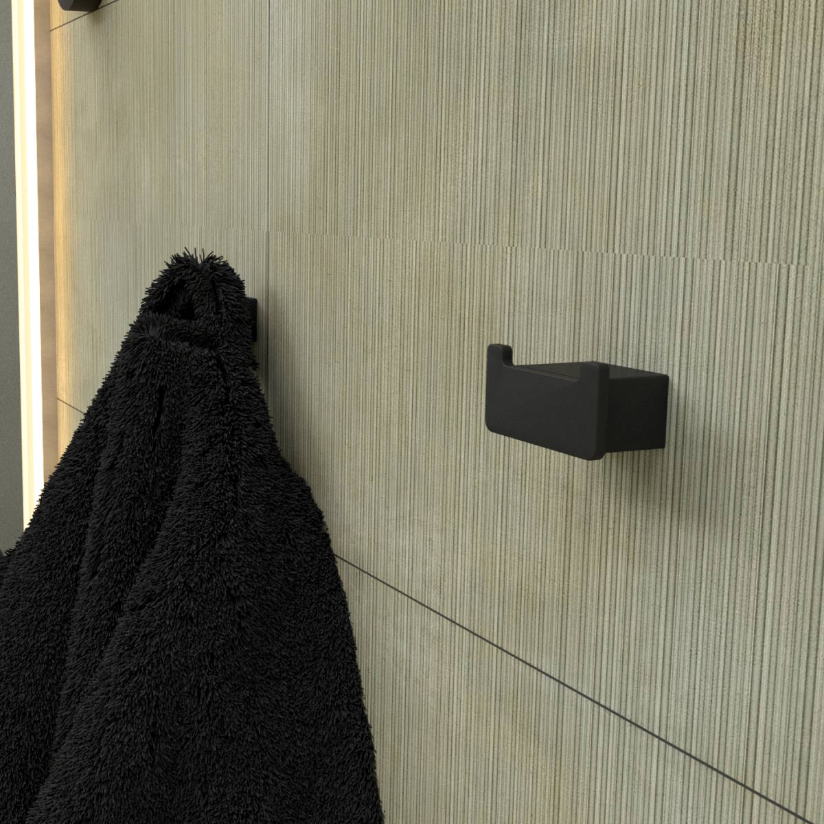 Dizajnerska dvojna kovinska črna kljuka – pravokotna dvojna kljuka je odličen dodatek za kopalnico. Minimalizem, eleganca, brezčasnost? Črna barva lahko predstavlja vse to. Črna naj v kopalnici ne prevladuje, bo pa v kombinaciji z belo ustvarila edinstven prostor, ki ga ni na spregled. Še vedno oklevate, ali bi uporabili črno? Začnite z dodatki KIBO.