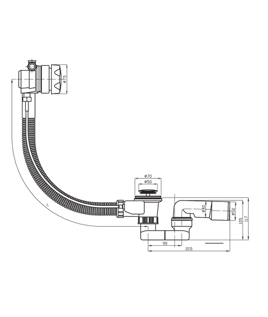 PB sifon za kopalno kad automatic 40/50 L=550 s polnjenjem