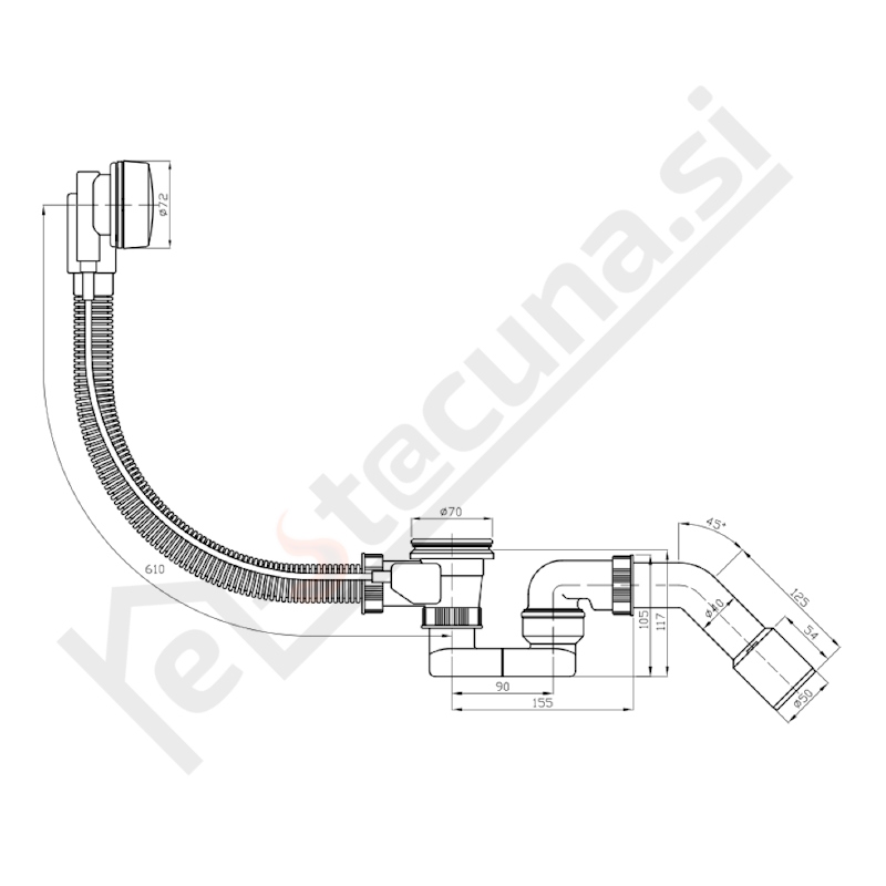 PB sifon za kopalno kad automatic 40/50 L=610mm, črna