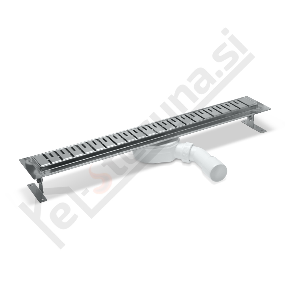Odtočna kanaleta iz nerjavečega jekla vključuje kombiniran sifon s protismradno zaporo, ki zagotavlja visok pretok in enostavno odstranitev za preprosto mehansko čiščenje odtočnega sistema. Vgrajeni filter se uporablja za lovljenje las in druge umazanije. Zahvaljujoč nastavljivim nogicam je montaža odtočne kanalete zelo enostavna.
