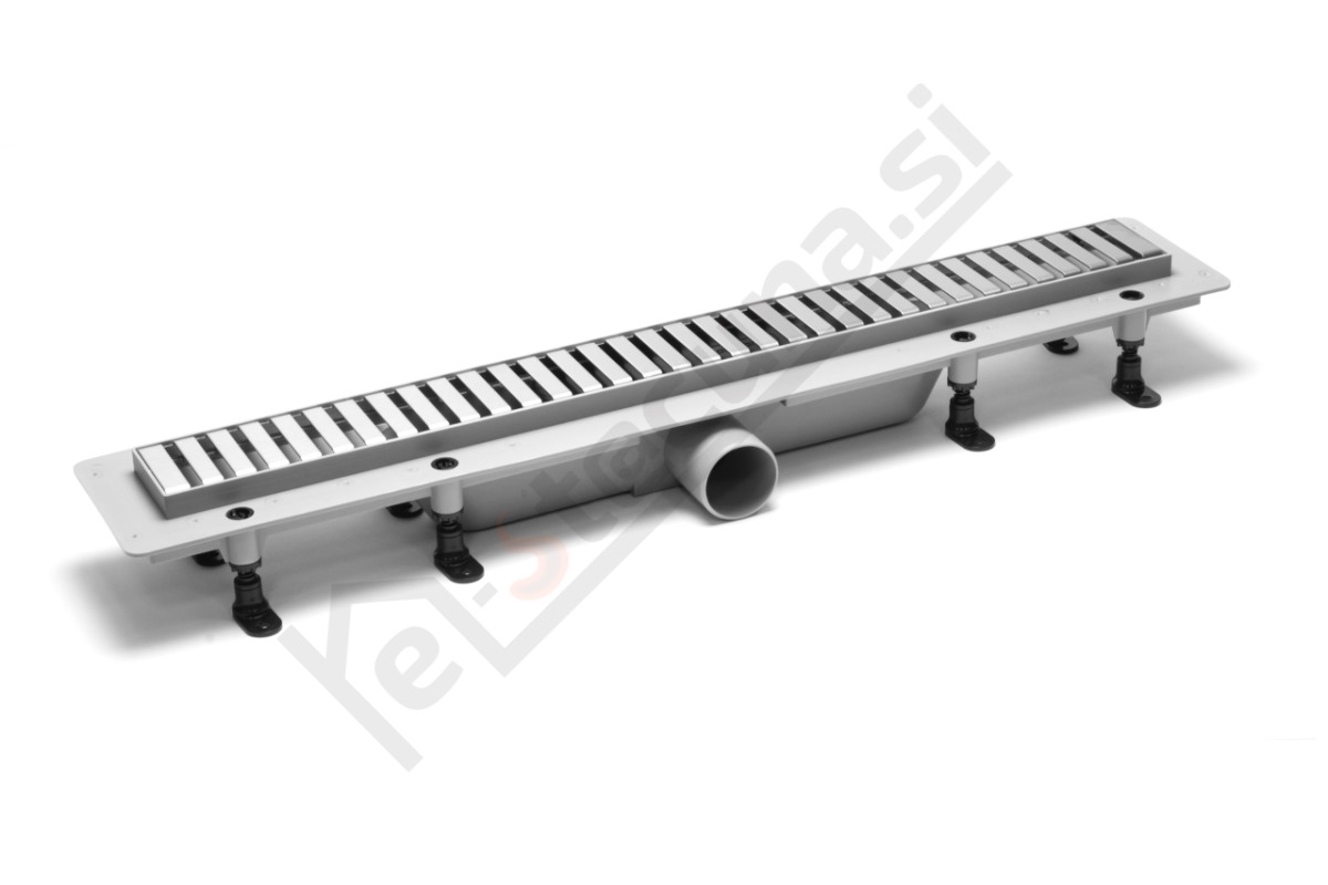 Sestavni del odtočne kanalete je kombiniran sifon s protismradno zaporo, z visokim pretokom, ki je enostavno snemljiv in razstavljiv. Inovativna zgradba sifona omogoča enostavno čiščenje odtočnega sistema. Odstranljiv in pralni filter se uporablja za lovljenje las in druge umazanije. Zahvaljujoč nastavljivim nogicam je montaža odtočne kanalete zelo enostavna. Tesnenje odtočne kanalete z okoliškim podložnim betonom je rešena s priloženim butilnim trakom.