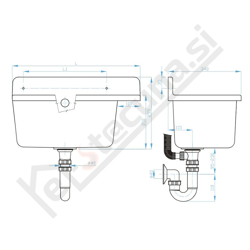 PVC umivalnik za garažo – komplet s sifonom (50/60 cm)