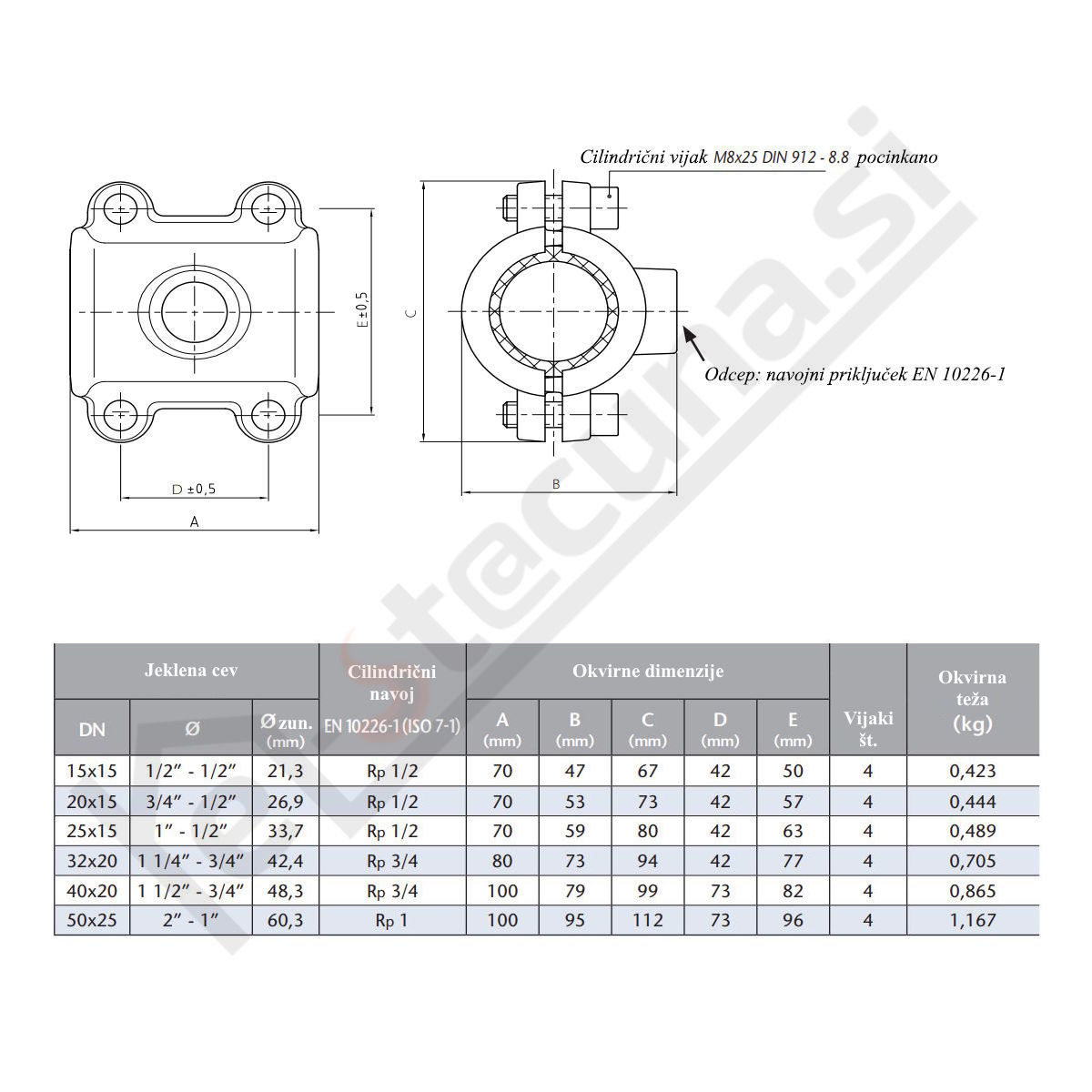 Primerno za jeklene cevi v skladu s standardom EN 10255.