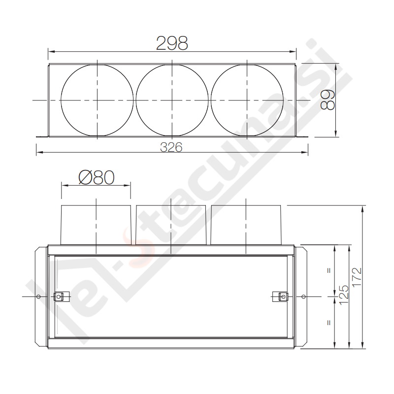 Komora za odvod/dovod zraka, stranski priključki fi80 mm (primerni za poltrde prezračevalne cevi fi75)