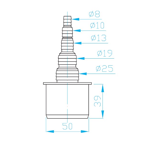 PVC čep s priključkom za gumi cev, ravni, proizvajalca PlastBrno.