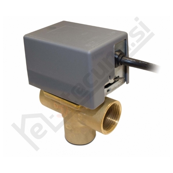 Na robustnem medeninastem ohišju je nameščen motorni pogon s povratno vzmetjo in omejevalnim stikalom, ki omogoča tudi ročni preklop ali zaprtje ventila v primeru izpada elektrike ali servisnih posegov.